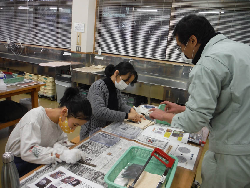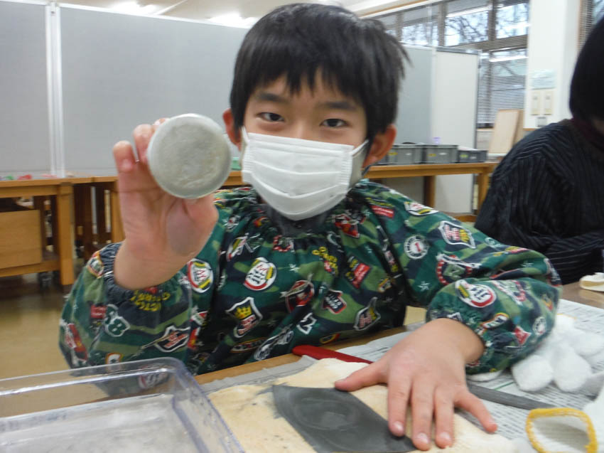 2/7(日)に「鏡づくり」の体験を行いました。ガイダンスでは、弥生時代の銅剣・銅矛や銅鐸の移り変わり、鋳造(型に流してつくる)と鍛造(たたいてつくる)の違いなどを学びました。その後、羽咋市四柳白山下遺跡から出土した古墳時代の鏡をモデルにした鏡の鋳造の見学をしました。金属を熱して溶けていく様子や、型に入れてしばらくすると冷えて固まる様子に、「おおー!」と歓声があがる場面もありました。